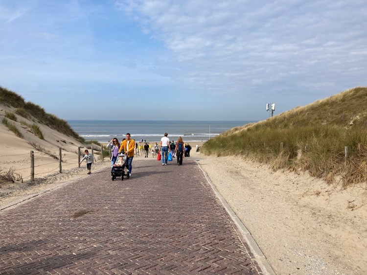 La piste cyclable longe la digue (des dunes) qui longe la mer. Même si je n’y vais pas souvent je connais bien. Après une trentaine de kilomètres c’est la plage à proximité de Noordwijkerhout. On dirait une station balnéaire miniature, il n’y a qu’une seule petite rue avec trois ou quatre restaurants.