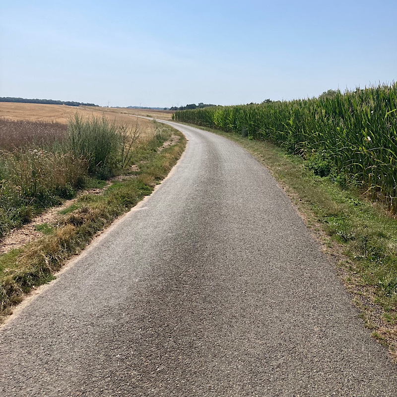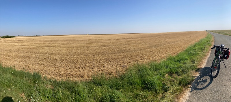 Ensuite, une fois Chartres derrière moi, le décor est le même pour toute la journée : des champs, des champs et des champs. Essentiellement du blé, un peu de maïs, de tournesol, de colza. Le tout sur une terre aussi sèche que votre prof de maths du collège, celle que vous détestiez.