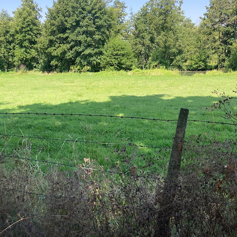 Un champ, une petite rivière, des arbres, une clôture : il ne manque que l’âne Anatole et le pull blanc et bleu de Philémon.