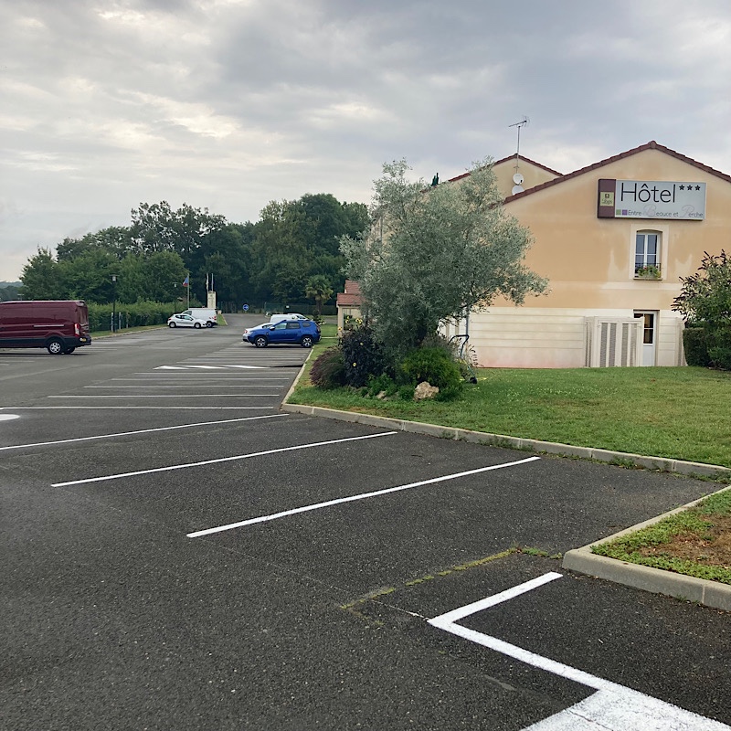 Enfin, je débarque à l’hôtel, un établissement un peu standard, mais il y a un garage pour mon vélo et la chambre, située au rez-de-chaussée côté est, est bien fraîche. Parfait pour se reposer.
