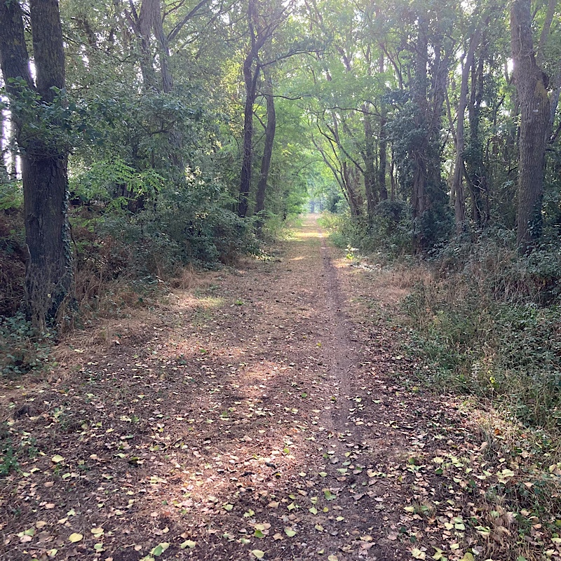 Après une poignée de kilomètres, je me retrouve, bonheur, à traverser un bout de forêt.