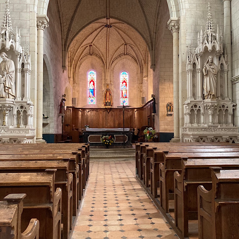 Dans le village, je tombe sur une église dont la porte est ouverte, je vais donc faire un petit tour à l’intérieur. Ça me permet de me poser quelques minutes et d’être un peu au sec. Et puis cette église est très jolie.
