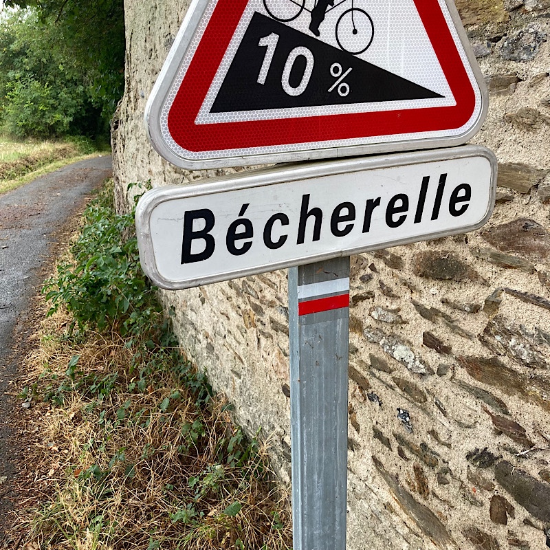 Je m’approche d’Angers, les villages sont moins espacés, et à partir de St-Sylvain d’Anjou (une dizaine de kilomètres avant Angers), les panneaux de l’itinéraire cyclable disparaissent. Et avec la pluie pas très pratique de consulter le GPS sur le téléphone.