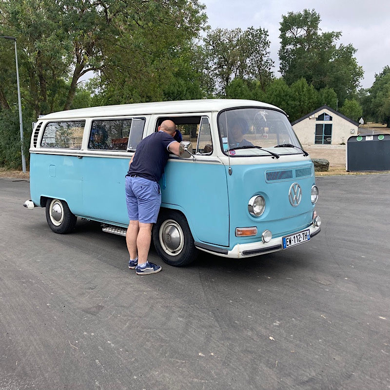 À Rochefort-sur-Loire, je croise un combi VW rempli de gens accoutrés de façon bizarre. L’un d’entre eux descend et me demande si j’ai vu d’autre combis — il m’explique qu’ils sont en train de jouer à un jeu. Je lui dis que je ne suis pas de la région, mais qu’à mon avis la Californie c’est pas trop par là.