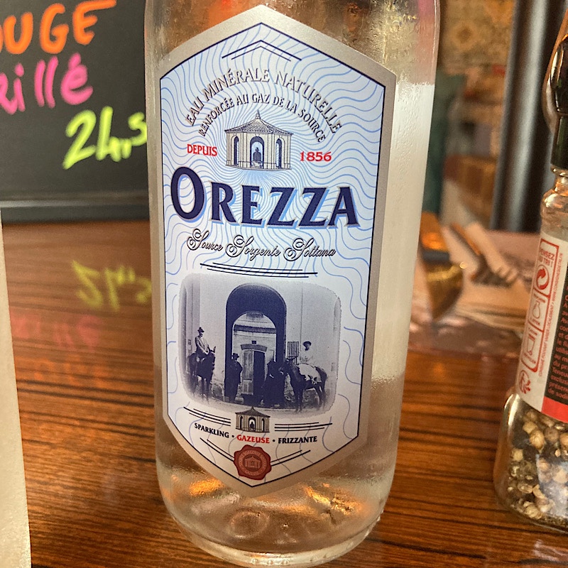 Le soir je vais manger dans un restaurant à quelques kilomètres de là. En boisson on me sert de l’Orezza, une eau pétillante corse. Bien que n’ayant jamais mis les pieds en Corse, je connais cette boisson puisque depuis un an mon neveu m’en rebat les oreilles. Si vous le lancez là-dessus, c’est à vos risques et périls. Vous voilà prévenus.