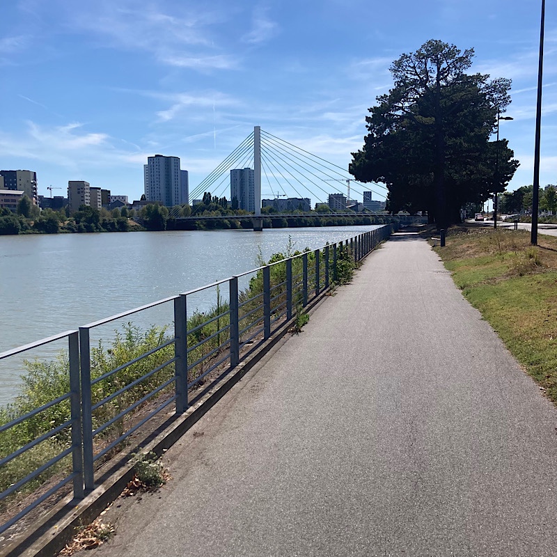 Sur la fin je trouve le temps un peu long, mais je finis par arriver à Nantes. L’arrivée en ville, au bord de la Loire, est bien plus sympa que celle d’Angers, où j’avais traversé des zones résidentielles puis une zone commerciale, tout en loupant le centre-ville.