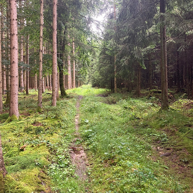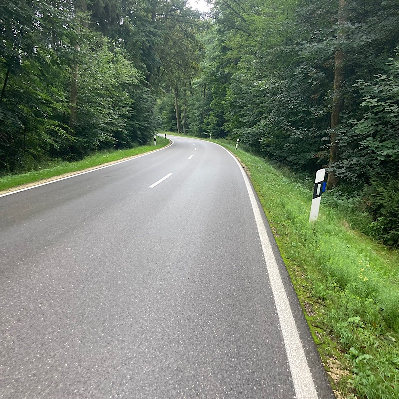 Après quelques kilomètres, les panneaux Pfaffenhofen disparaissent, je ne sais pas par où aller. Sur la carte, il y a bien des chemins forestiers plus ou moins en ligne droite, mais ça pourrait être de la piste bien practicable comme du chemin boueux où je serai peut-être obligé de pousser le vélo. Je décide donc de rejoindre mon itinéraire.