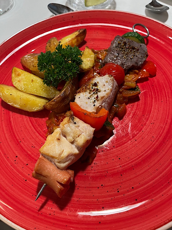 Quand il est l’heure de partir, il est 19h passées et nous avisons un restaurant dans la station. C’est typiquement typique, à base de patates, schnitzel et spätzles au fromage.