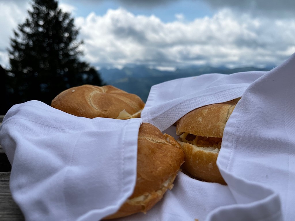 À la fin de la balade, nous sanctionnons nos efforts avec un Topfenstrudel (Strudel au fromage blanc) et un Bauernkrapfen (beignet paysan). Le fort accent de la serveuse, même quand elle parle allemand, nous indique que le lieu est bien typique.