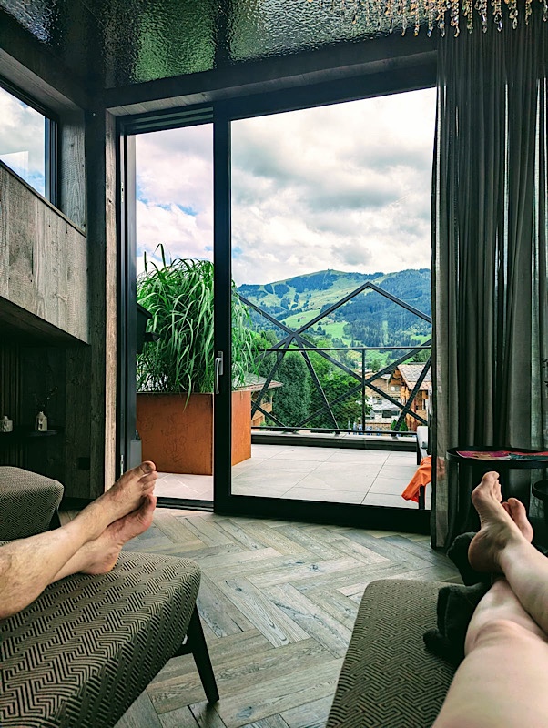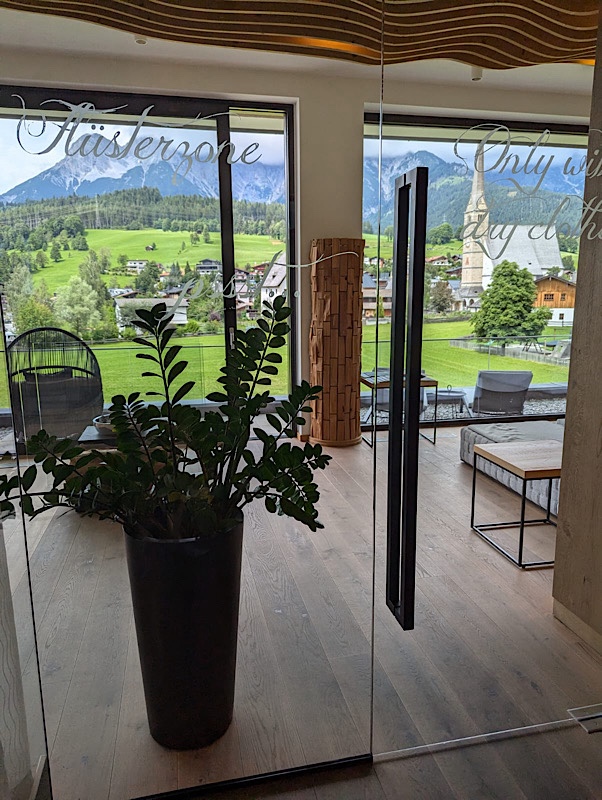 Le spa de Maria-Alm est vraiment chouette, tout est prévu pour que ce soit une expérience. Pour aller au sauna il y a même des boîtes pour ranger ses lunettes.