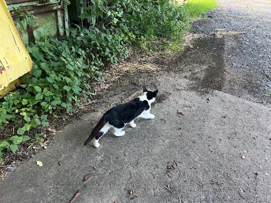 Par la suite, ce sont de petites routes au milieu de fermes bien proprettes, et un chaton curieux mais craintif, qui bizarrement miaule silencieusement.