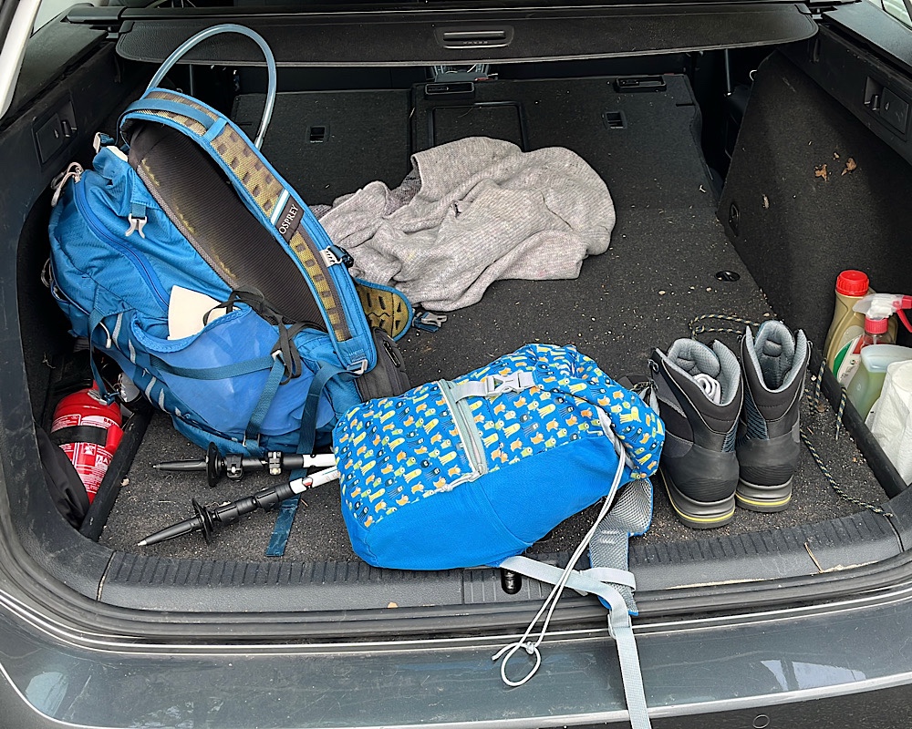 Retour à la voiture avec les pieds en vrac et les vêtements qui puent.