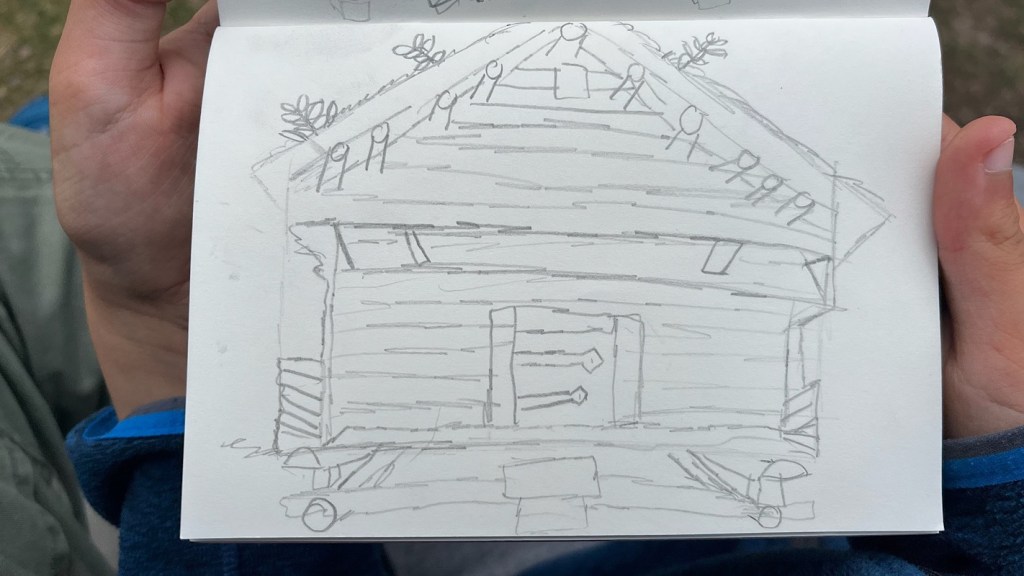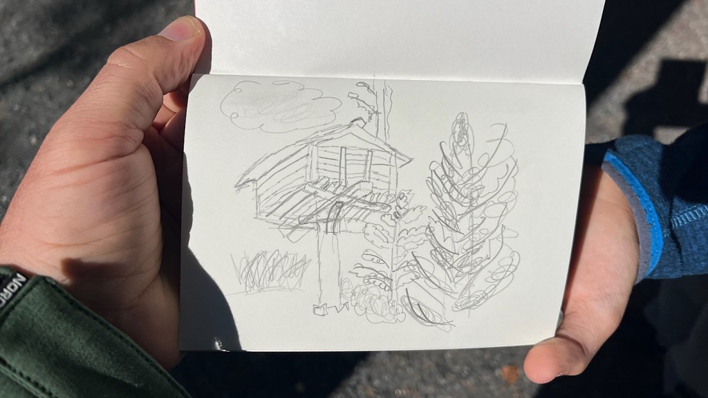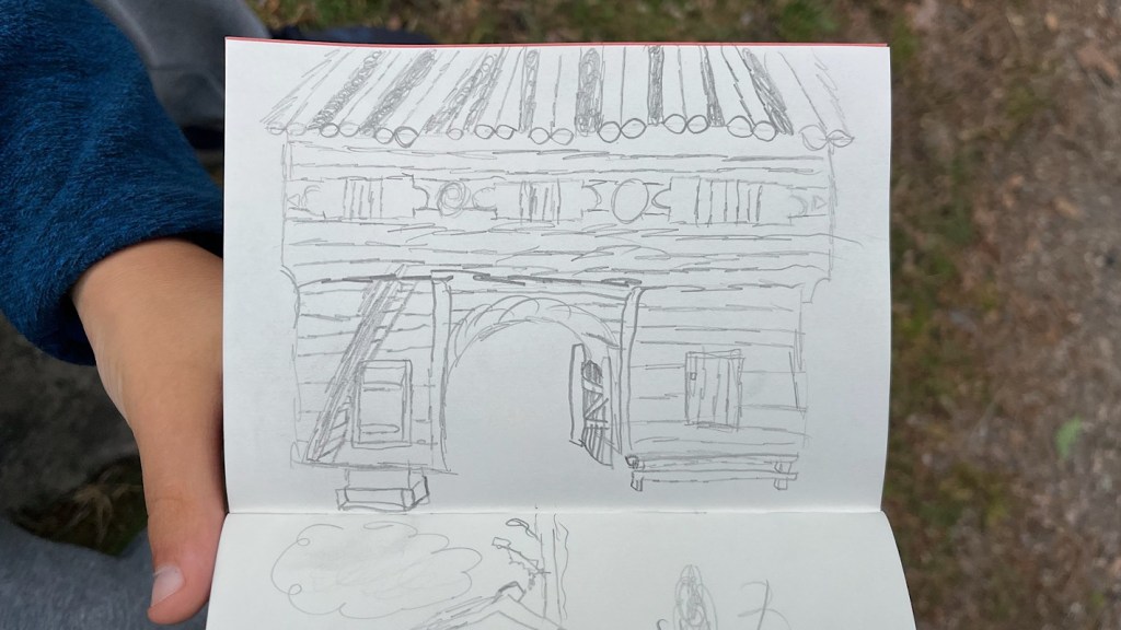 Le château n’est pas immense, mais nous prenons notre temps car Grogu, patient et minutieux, passe près de deux heures penché sur son carnet, à dessiner les détails d’une armure.